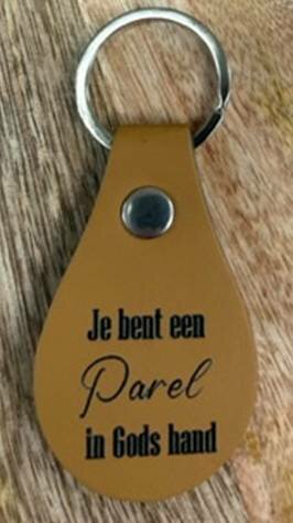 Schrijf als eerste een recensie “Sleutelhanger oker Je bent een parel”