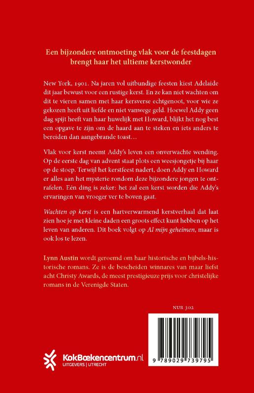 <em>Wachten op kerst</em> van Lynn Austin gaat verder waar Al mijn geheimen</em> ophield. Adelaide Forsythe kan niet wachten om kerst te vieren met haar kersverse echtgenoot, met wie ze getrouwd is uit liefde en niet voor het geld. Maar de overgang van haar rijke bestaan naar het ingetogen leven van een huisvrouw gaat niet zonder slag of stoot. Hoewel ze haar huwelijk met Howard geen dag betreurt, lukt het haar slechts met moeite om de haard aan te steken en meer te bereiden dan aangebrande toast.<br> <br> Als er op de eerste dag van advent plots een weesjongetje bij haar op de stoep staat die bereid is haar te helpen in het huishouden én daar nog eens heel bevlogen in is ook, lijkt het wel te mooi om waar te zijn. Terwijl het kerstfeest nadert, doen Addy en Howard er alles aan het mysterie rondom deze bijzondere jongen te ontrafelen. Eén ding is zeker: het zal een kerst worden die Addy's ervaringen van vroeger ver te boven gaat.<br>